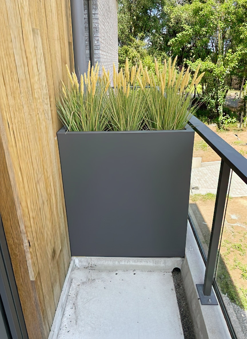 - Flexibel in ontwerp: Het grote voordeel van aluminium is de flexibiliteit in maatwerk. Wij kunnen aluminium bloembakken produceren in vrijwel elke gewenste hoogte, lengte en vorm. Of je nu een strakke, vierkante bak zoekt, een lange, rechthoekige bloembak om een muur te accentueren, of een complexe L-vormige plantenbak voor een specifieke hoek, alles is mogelijk.